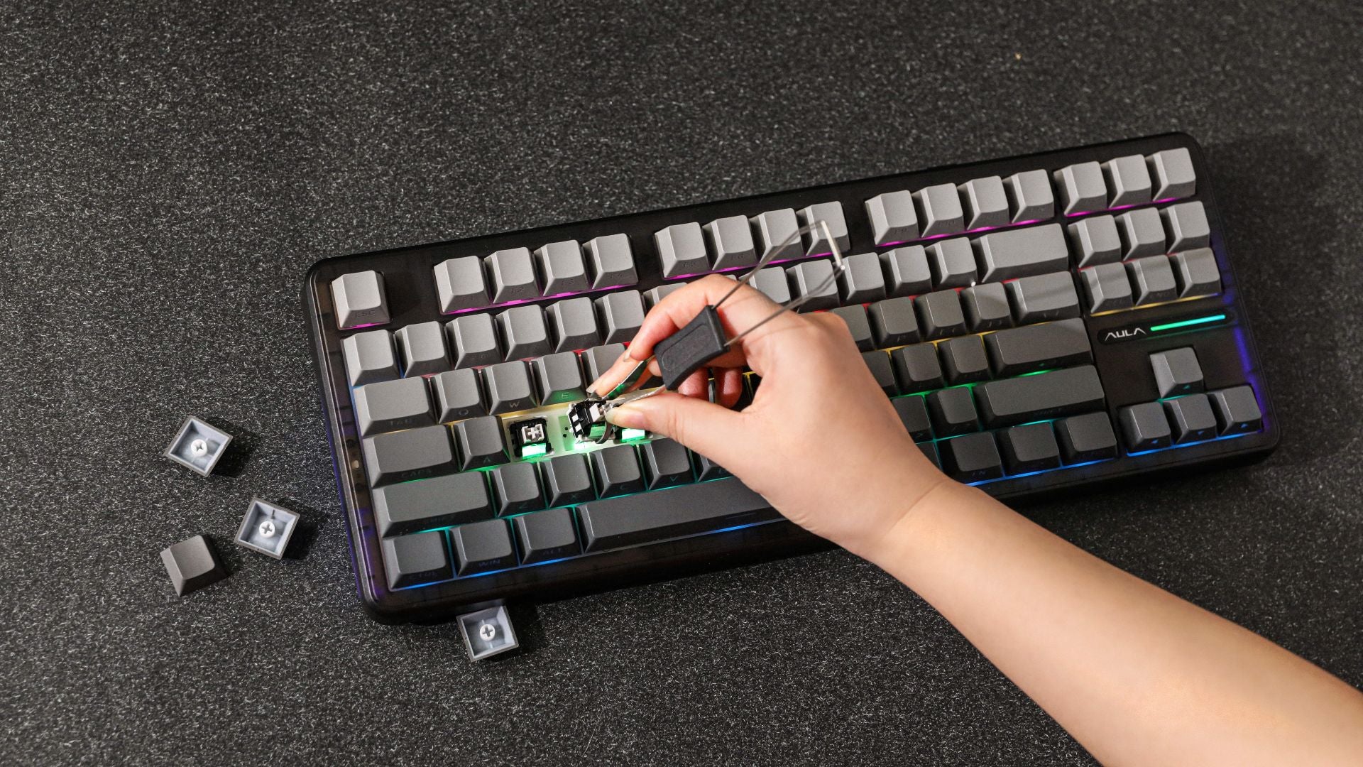 AULA F87 Pro is a premium hot-swappable mechanical keyboard featuring a compact 87-key layout, smooth RGB backlighting, and high-quality switches for a fast, responsive typing experience. Perfect for gaming and productivity, it offers durable build quality, customizable lighting effects, and a comfortable design for long sessions.