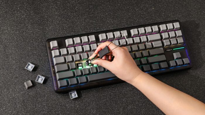 The AULA F87 Pro features a gasket design, incorporating an extended silicone pad for a soft and delicate touch. This innovative structure ensures each keystroke is comfortable and satisfying, providing a unique elastic feel.